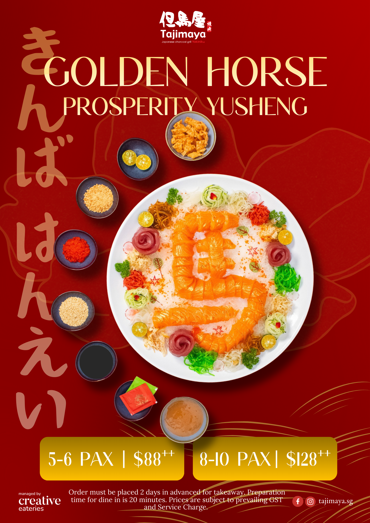 To welcome New Year 2026 in Singapore with a bang, Tajimaya has launched its limited-edition Golden Horse Prosperity Yusheng. This auspicious platter is designed specifically for sharing and comes in two sizes: